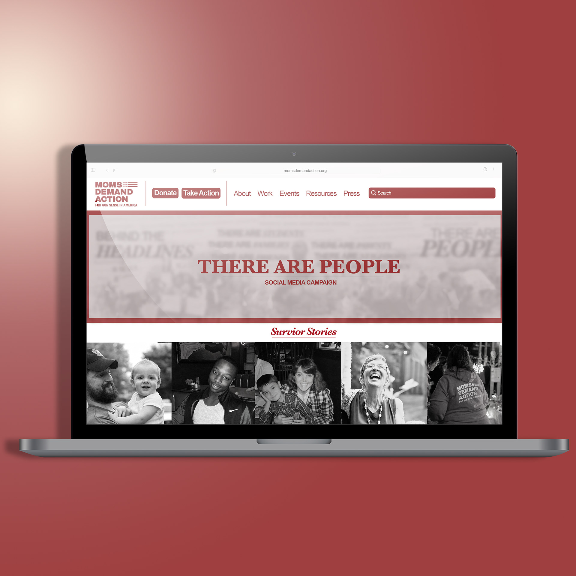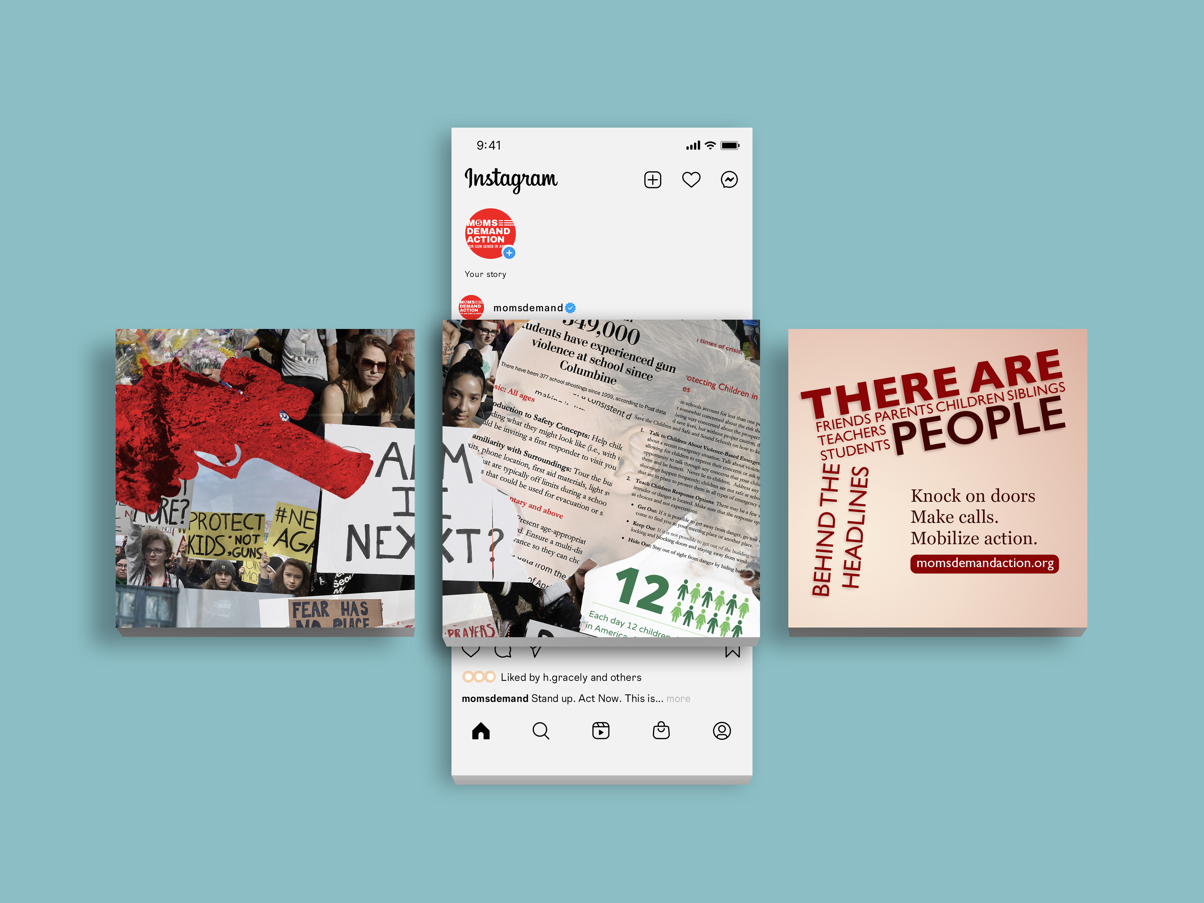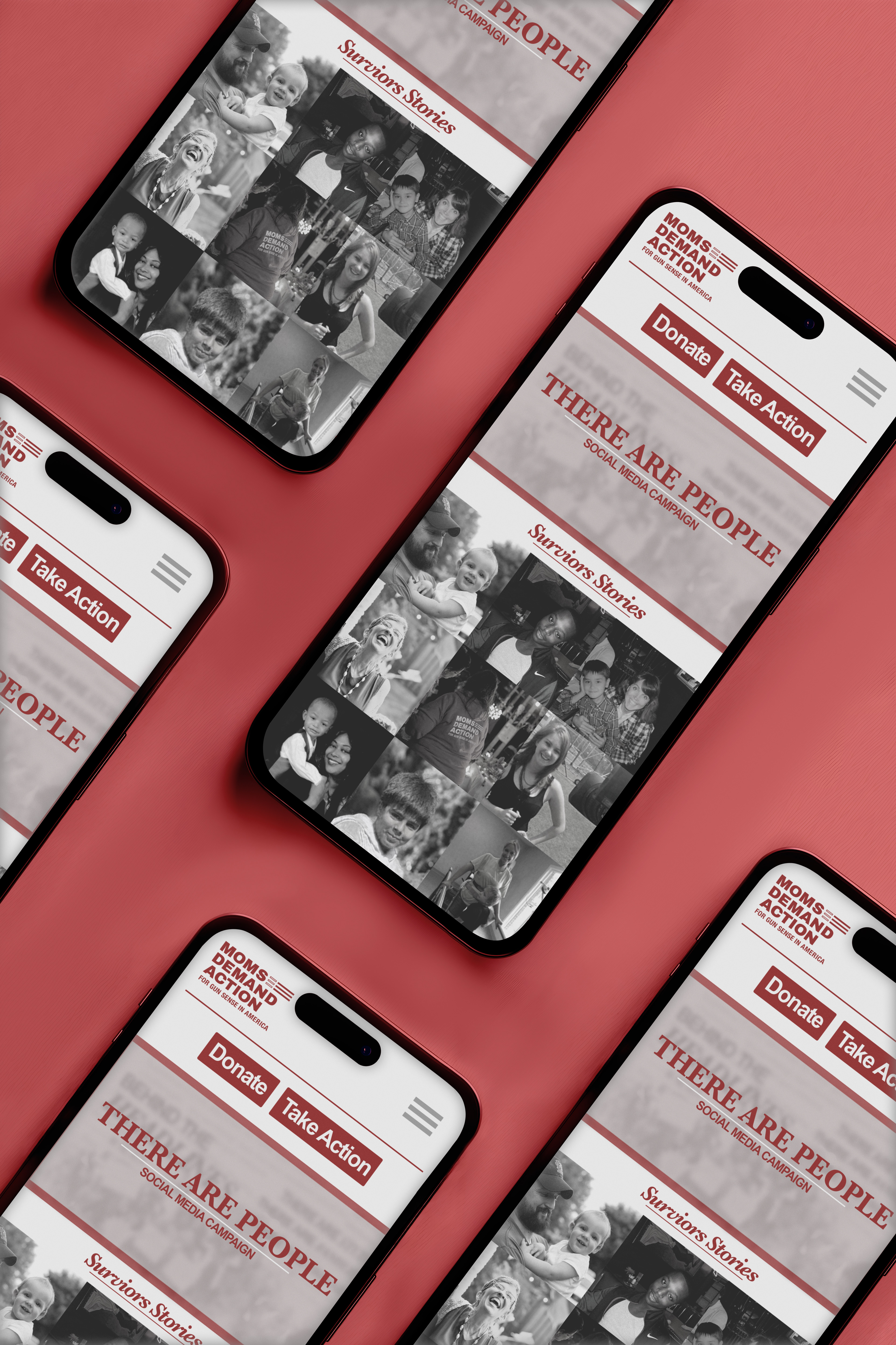 This photograph-driven Instagram carousel is a concept social media campaign created for Moms Demand Action, a grassroots movement committed to ending gun violence. The carousel directs viewers to a redesigned, fully optimized version of momsdemandaction.org presented in both horizontal and vertical formats for seamless viewing across devices.